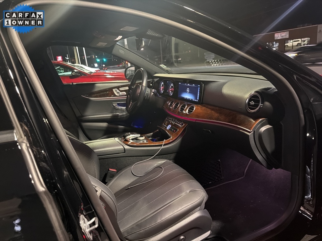 This 2019 Mercedes-Benz E 300 4MATIC® is Black with Black MB-Tex seats and Burl Walnut Wood trim. It is equipped with the Sport Styling Package (AMG Styling), Premium Package (SiriusXM Radio, Keyless-Go with Hands-Free Access, Electronic Trunk Closer, NFC Wireless Charging), Rearview Camera, Blind Spot Assist, Panorama Sunroof, Heated Steering Wheel, Burmester® Surround Sound System, Heated Front Seats, 18" 5-Spoke Wheels, and much more!