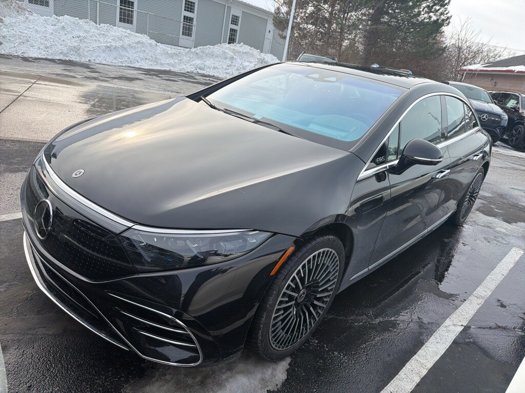 This Certified Pre-Owned 2022 Mercedes-Benz EQS 580 4MATIC® is Obsidian Black Metallic with Black Nappa Leather seats and Natural Grain Anthracite Linden Wood trim. It is equipped with the Pinnacle Package (Power Rear Seats, Rear Side Airbags, Multicontour Front Seats w/ Massage, Heated/Ventilated Rear Seats, 4-Zone Climate Control, Rear Wireless Charging), Winter Package (Heated Steering Wheel, Heated Windshield, Heated Washer System), Executive Rear Seat Package Plus (Neck/Shoulder Heat in Rear, Multi-Contour Rear Seats, MBUX Rear Tablet, Rapid Heating Rear Seats), MBUX Augmented Reality Head-Up Display, MBUX Interior Assistant in Front and Rear, AMG Line Exterior, 21" AMG Multispoke Wheels with Black Accents, Active Ambient Lighting, and much more!