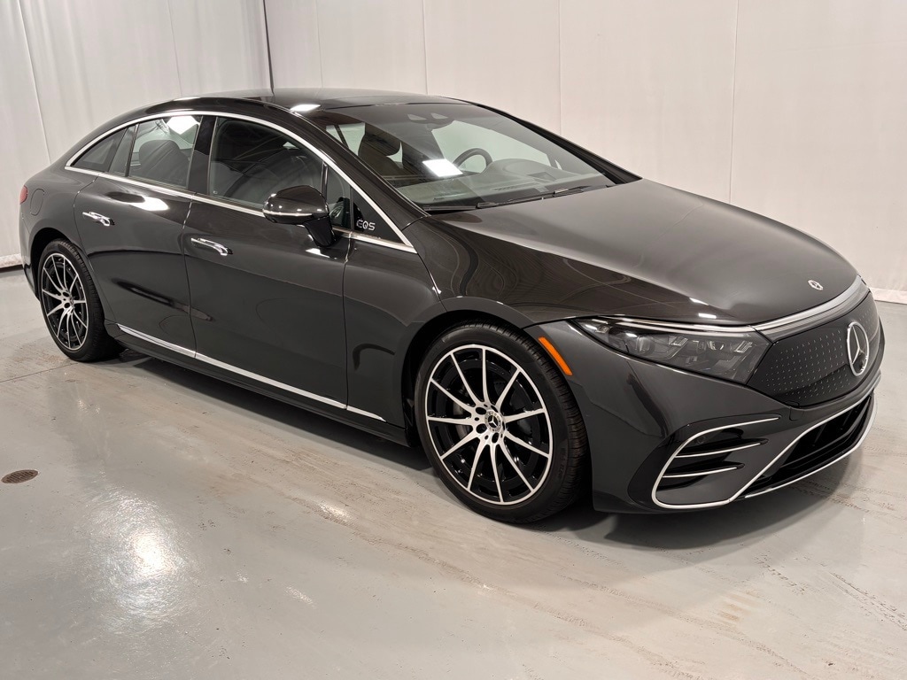 This Certified Pre-Owned 2022 Mercedes-Benz EQS 580 4MATIC® is Graphite Gray Metallic with Black Leather seats and Natural Grain Brown Walnut Wood trim. It is equipped with the Pinnacle Trim (Power Rear Seats, Rear Side Airbags, Comfort Armrests in Rear, Multicontour Front Seats with Massage, Heated/Ventilated Rear Seats, 4-Zone Climate Control, Wireless Charging in Rear), Heated Steering Wheel, MBUX Augmented Reality Head-Up Display, AMG Line Exterior, 21" AMG Multispoke Wheels with Black Accents, Apple CarPlay / Android Auto Compatibility, Active Distance Assist Distronic, Parktronic with Active Parking Assist, and much more!